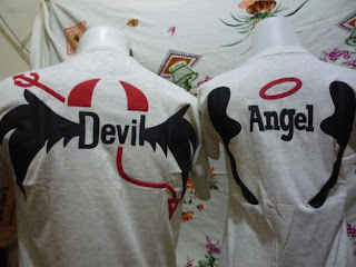 Jual kaos couple Devil Angel . Depan Polos , warna putih harga Rp.140.000,- (belum ongkir) . untuk pemesanan hub. Rahmad pada kontak kami . Atau bisa di ambil langsung di alamat Jl.Pandean III / 339 Sidoarjo .. Untuk ongkir langsung kami kirim ke alamat pemesan ..